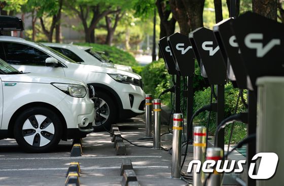 서울 강남구의 한 테슬라 전기차 전용 충전구역. 현대차(005380)© News1 구윤성 기자 |