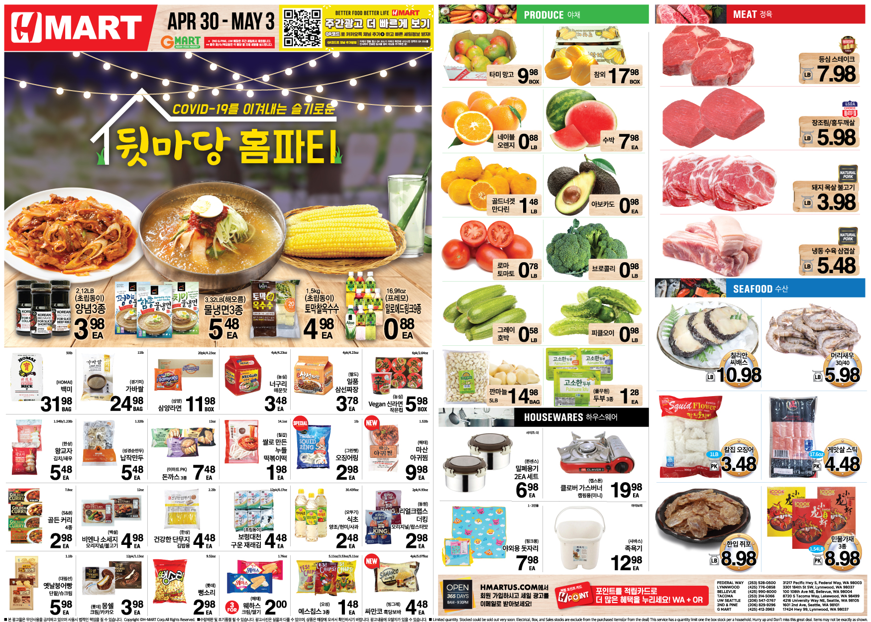 시애틀 한인마켓 주말세일정보(4월 30일~5월 3일, 5월 6일)