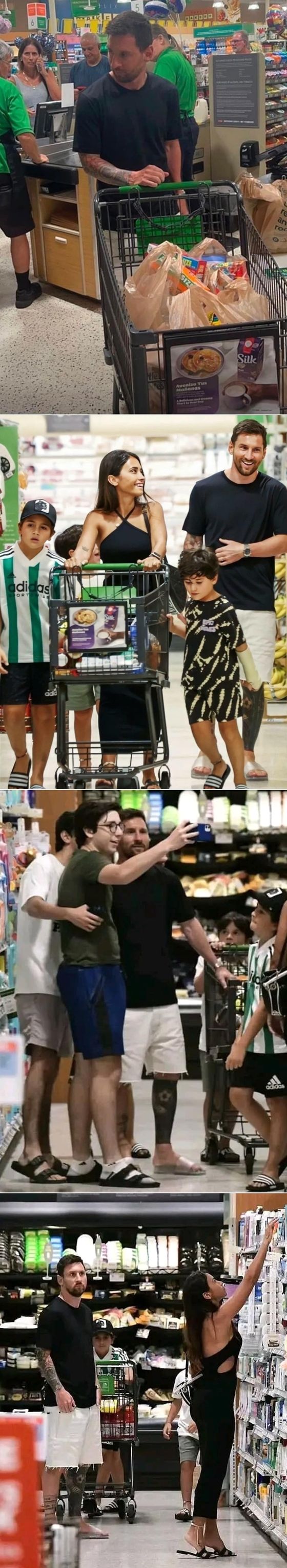 이날 공개된 사진에서 메시는 흰색 반바지차림으로 쇼핑 카트를 끌고 물건을 구매 중인 모습이었다.