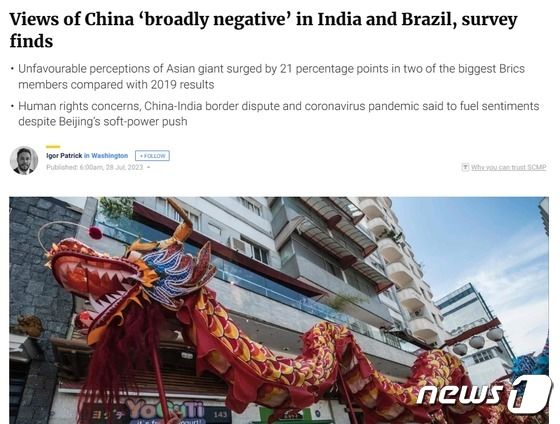 인도인의 대중 인식이 좋지 않은 것은 이미 널리 알려진 사실이지만 브라질 국민들의 대중 인식이 급격하게 악화된 것은 놀랄만한 결과다. 최근 브라질은 대외 무역에 위안화 결제를 도입하는 등 친중노선을 분명히 하고 있다.