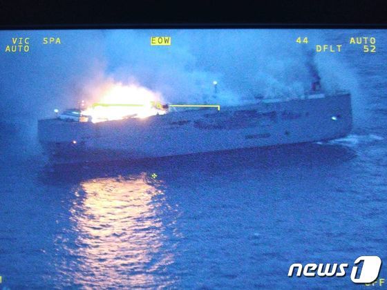 지난 26일 자정께(현지시간) 네덜란드 해역에서 자동차를 운송하는 컨테이너선 ‘프리맨틀 하이웨이’ 호에서 화재가 발생했다.