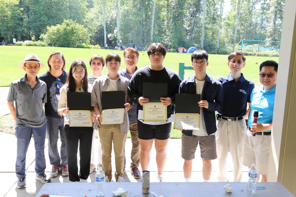 서울대 동창회는 지난 주말인 12일 벨뷰 뉴캐슬비치 파크에서 열림 여름야유회때 올해 선발된 장학생들을 초청해 장학금 수여식을 가졌다.
