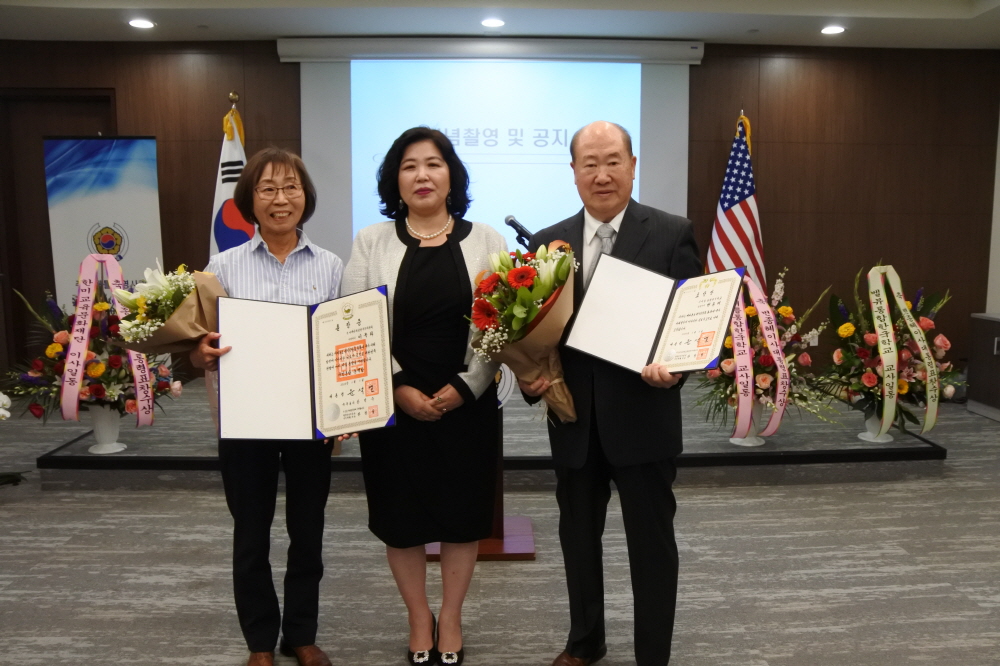 이날 영광을 안은 변 이사와 로리 와다씨 모두 현재 한미교육문화재단 이사로 봉사를 하고 있어 이날 행사에는 가족들은 물론 시애틀ㆍ벨뷰 통합한국학교 관계자들이 대거 참석했다.