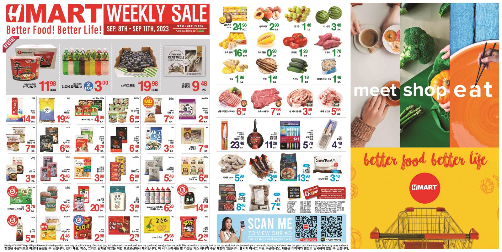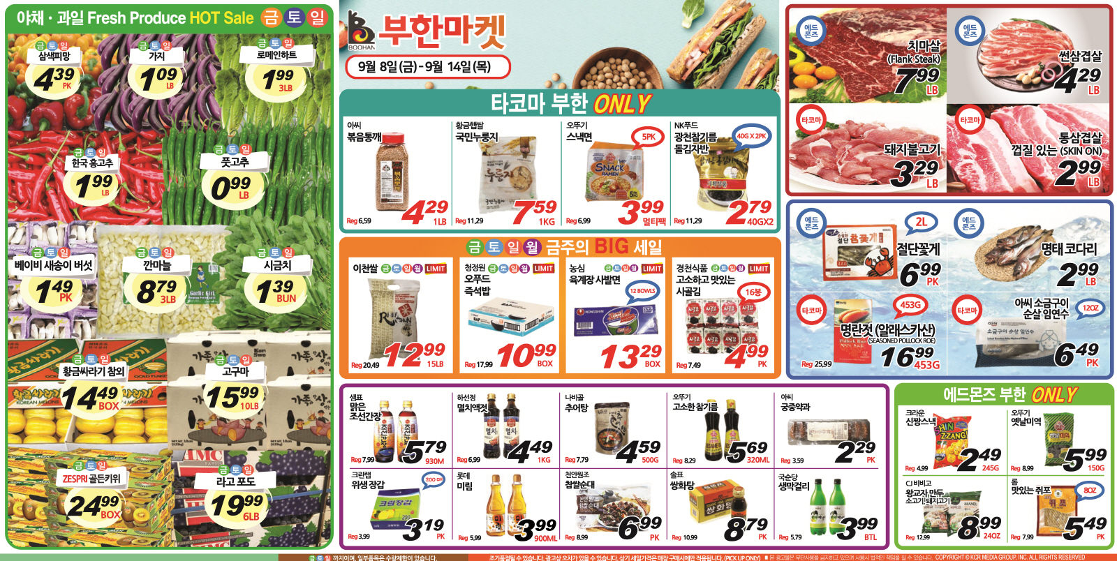 시애틀 한인마켓 주말세일정보(9월 8일~ 9월 11일, 9월 14일)