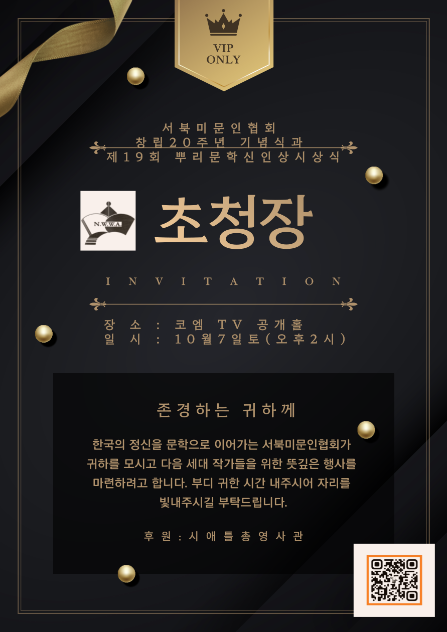 서북미문인협회는 이번 행사를 통해 9명에 달하는 새로운 작가와 4명의 후보작가 등 13명의 뿌리문학신인상 수상자들에게 시상을 통해 ‘문학인’이라는 타이틀로 더욱 정진해나갈 수 있도록 격려한다.