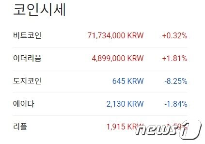 | 이 시각 현재 주요 암호화폐 국내 시황 - 업비트 갈무리 |