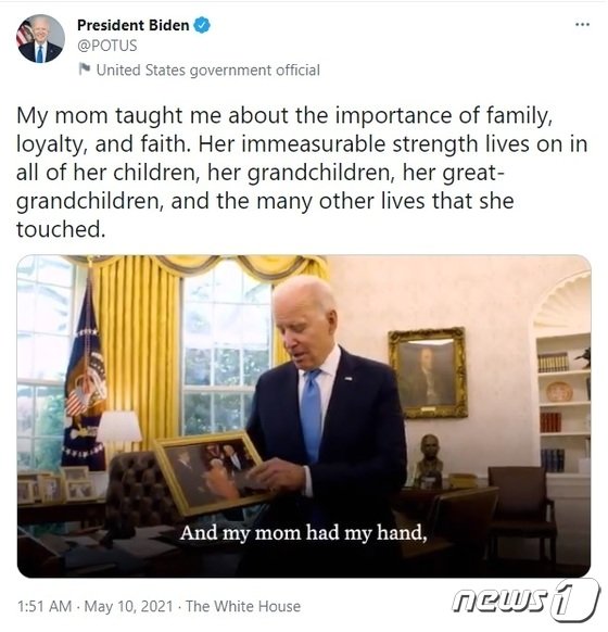 바이든 대통령은 또 다른 트윗과 영상 메시지를 통해서도 2010년 작고한 자신의 어머니를 추억했다.