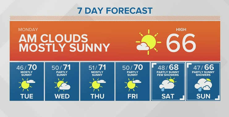 기상청에 따르면 첫 주가 시작되는 10일 아침부터 맑은 날씨를 보인 뒤 낮 최고기온이 66도까지 오르겠다. 기온은 점차 상승해 화요일인 11일에는 70도까지 오르면서 최고의 날씨를 보이겠다.