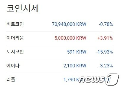 | 이 시각 현재 암호화폐 국내 시황 - 업비트 갈무리 |