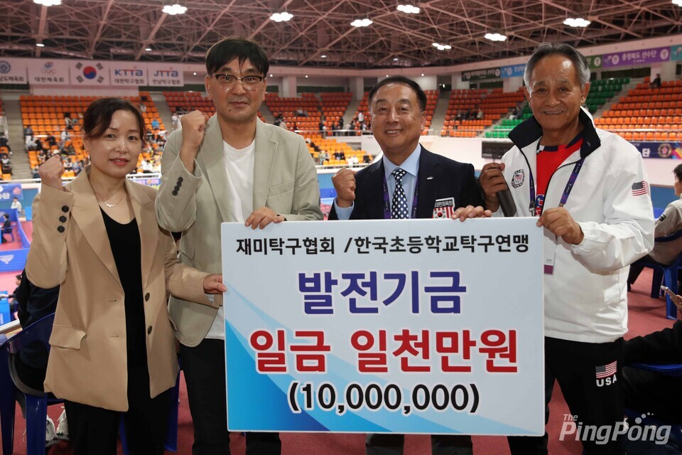 재미대한탁구협회(회장 권 정)이 최근 한국 유소년 탁구 선수 육성을 위해 한국초등학교탁구연맹에 발전기금 1만 달러를 기탁했다.
