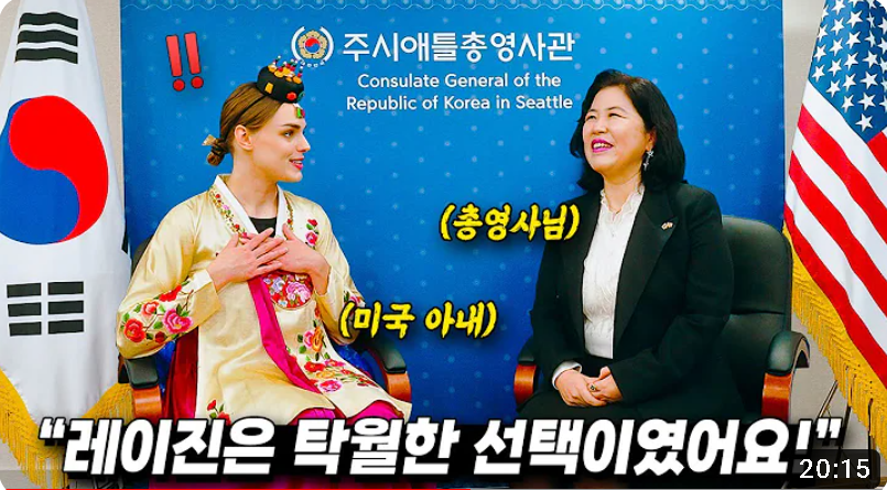 레이진 부부는 지난 9월 25일부터 27일까지 3일 동안 시애틀영사관이 주최한 다양한 행사에 참여하는 모습과 서은지 총영사를 인터뷰한 내용 등을 담은 영상을 만들어 지난 27일 자신들의 유튜브 채널에 올렸다. 현재 10만명 정도가 20분 정도인 이 영상을 시청했고 650개가 넘는 댓글이 이 영상에 올라오는 등 화제를 모으고 있다.