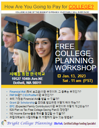 시애틀 한인대상 미국 대학 학자금 정보세미나 열린다