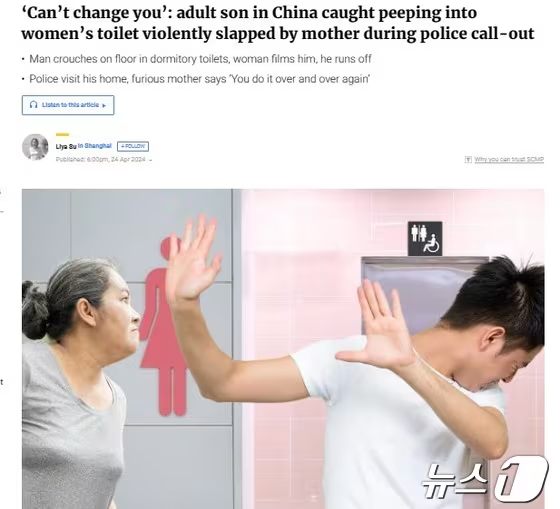 중국에서 아들이 여자 화장실을 도촬한 사실을 알고 뺨을 때리는 등 아들을 마구 구타한 엄마가 화제라고 홍콩의 사우스차이나모닝포스트(SCMP)가 25일 보도했다.