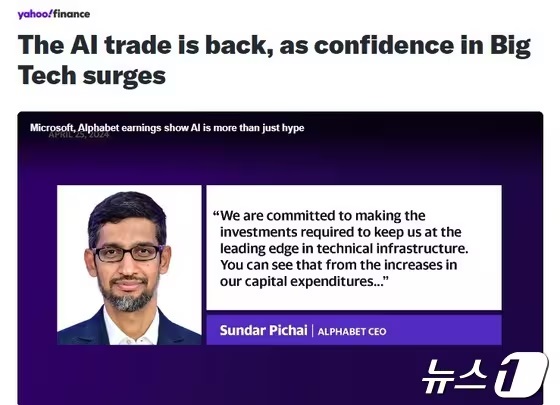 지난 24일 실적을 발표한 마이크로소프트(MS)와 구글의 모회사 알파벳 모두 클라우드 부분 성장에 힘입어 시장을 상회하는 분기 실적을 발표, AI 종목이 랠리를 재개했다.