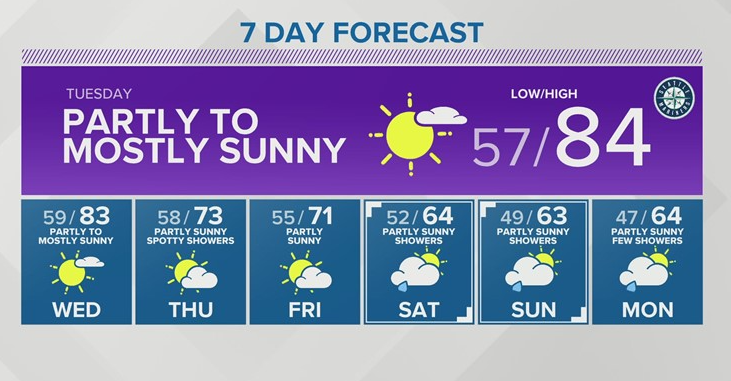 1일 시애틀 낮 최고 84도, 2일에는 83도
