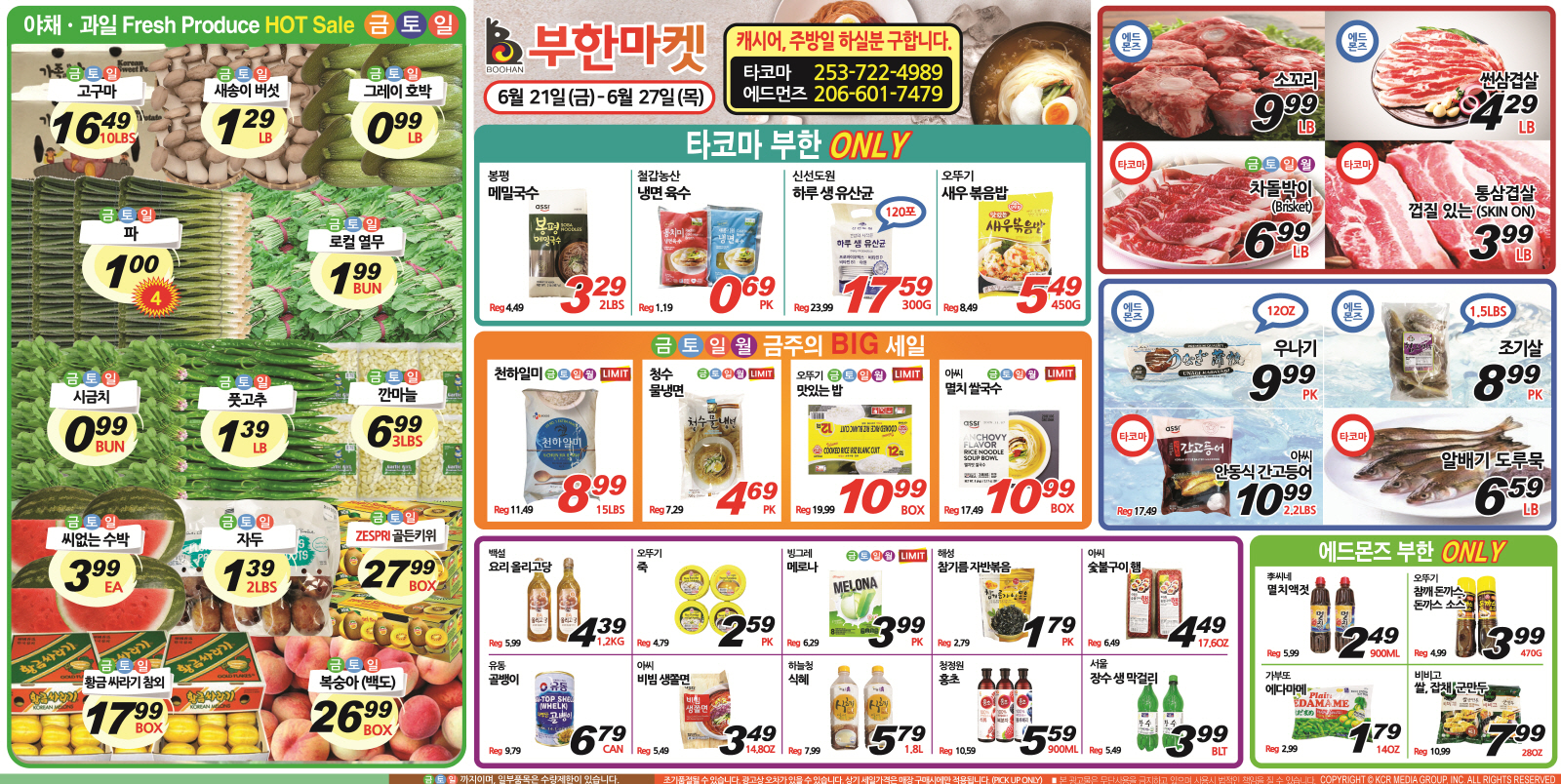 시애틀 한인마켓 주말세일정보(6월 21일~ 6월 24일, 6월 27일)