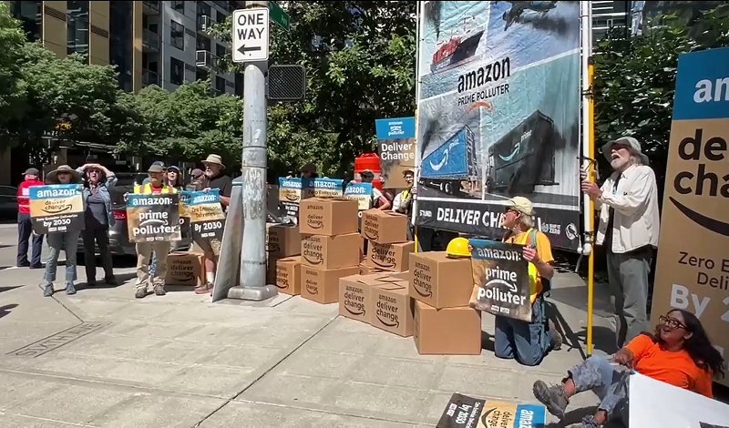 시위자들은 레노라 St.과 블랜차드 St. 사이의 6 Ave.를 약 반시간 동안 점거하고 아마존이 온실가스 방출을 선박은 2030년까지, 대형트럭은 2035년까지, 수송기는 2040년까지 각각 중단하라고 요구했다. 원래 아마존은 2040년까지 온실가스 방출을 일체 없애겠다고 약속한 바 있다.