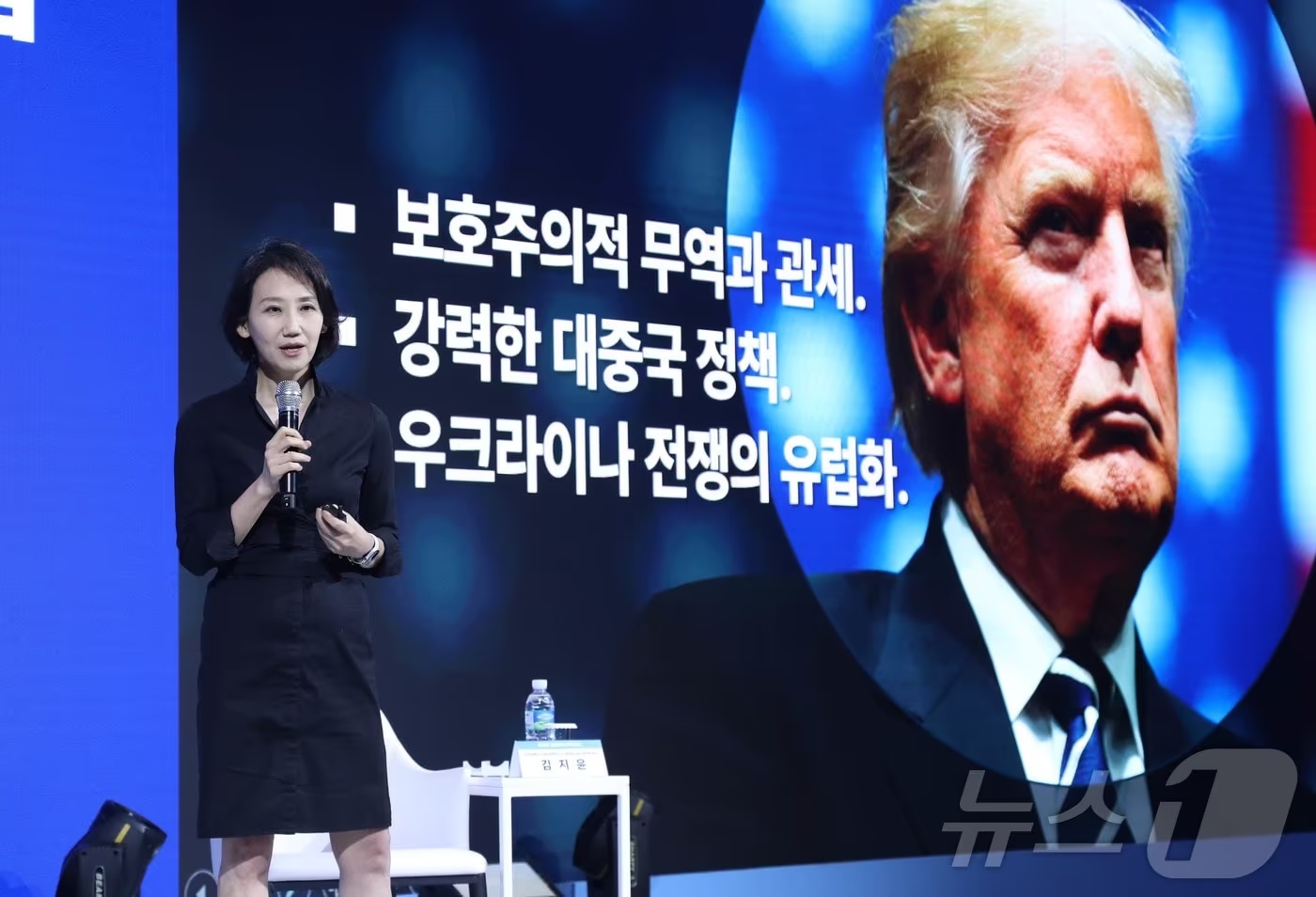 미국 정치 전문가인 김지윤 아산정책연구원 여론계량분석센터장은 18일 제주 신라호텔에서 열린 '대한상의 제주포럼'에서 '미국 대선과 우리의 대응' 주제 강연에서 "트럼프 후보가 재선에 성공한다면 미국 보호무역주의를 위해 더 강경한 정책을 내놓을 것"이라고 말했다.