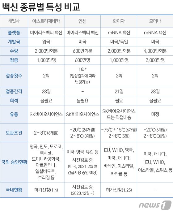 그렇다면 어떤 백신을 맞아야 할까. 현재 국내에 도입 예정인 백신은 바이러스 전달체 방식의 아스트라제네카 백신, 얀센 백신과 mRNA 유전자 백신인 화이자 백신, 모더나 백신이 있다.