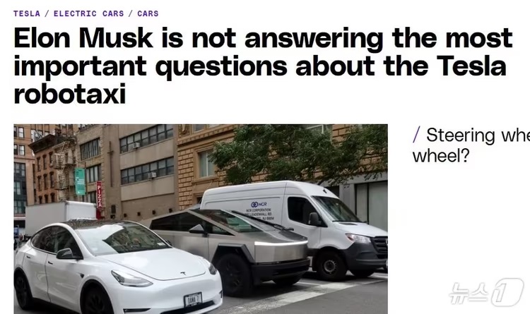 이에 따라 미국의 IT 전문지 ‘버지’가 머스크는 “로보택시에 대한 가장 중요한 질문에 답하지 않았다”고 지적했다.