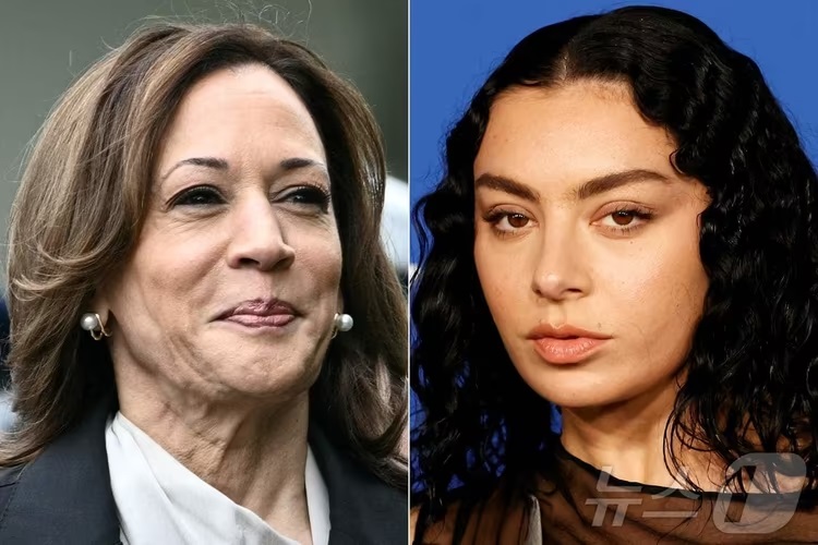 <카멀라 해리스 미국 부통령(좌)과 영국의 팝 가수이자 프로듀서 찰리XCX의 사진>