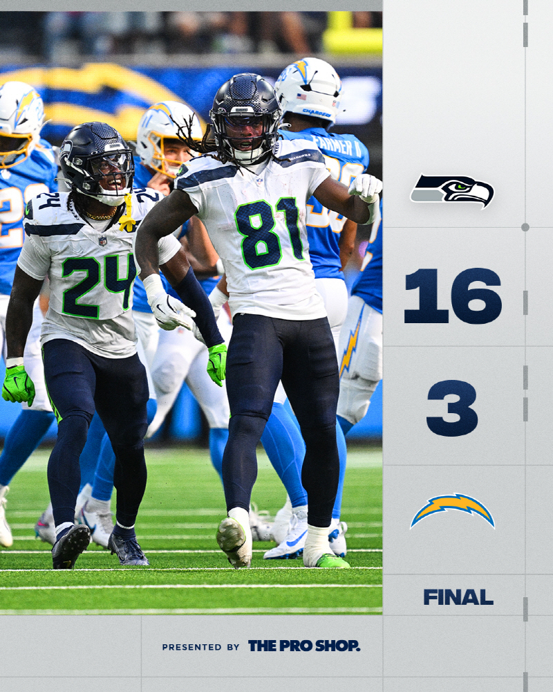 시혹스는 지난 10일 캘리포니아 로스앤젤레스 소피 스타디움에서 열린 LA 차저스와 올 시즌 첫 시범경기에서 압도적인 경기력으로 16-3으로 승리를 거뒀다. 미국 프로 풋볼 시범경기는 통상적으로 주전들이 나가지 않고 대부분 후보 선수들이 나가 경기력을 테스트하는 방식으로 열린다.