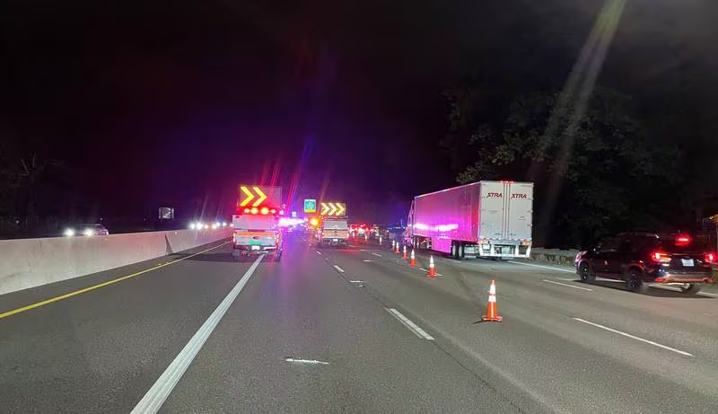 경찰은 이 여성의 신원을 확인하고 있으며 왜 한밤중에 I-5위를 걷고 있었는지 등을 조사하고 있다.