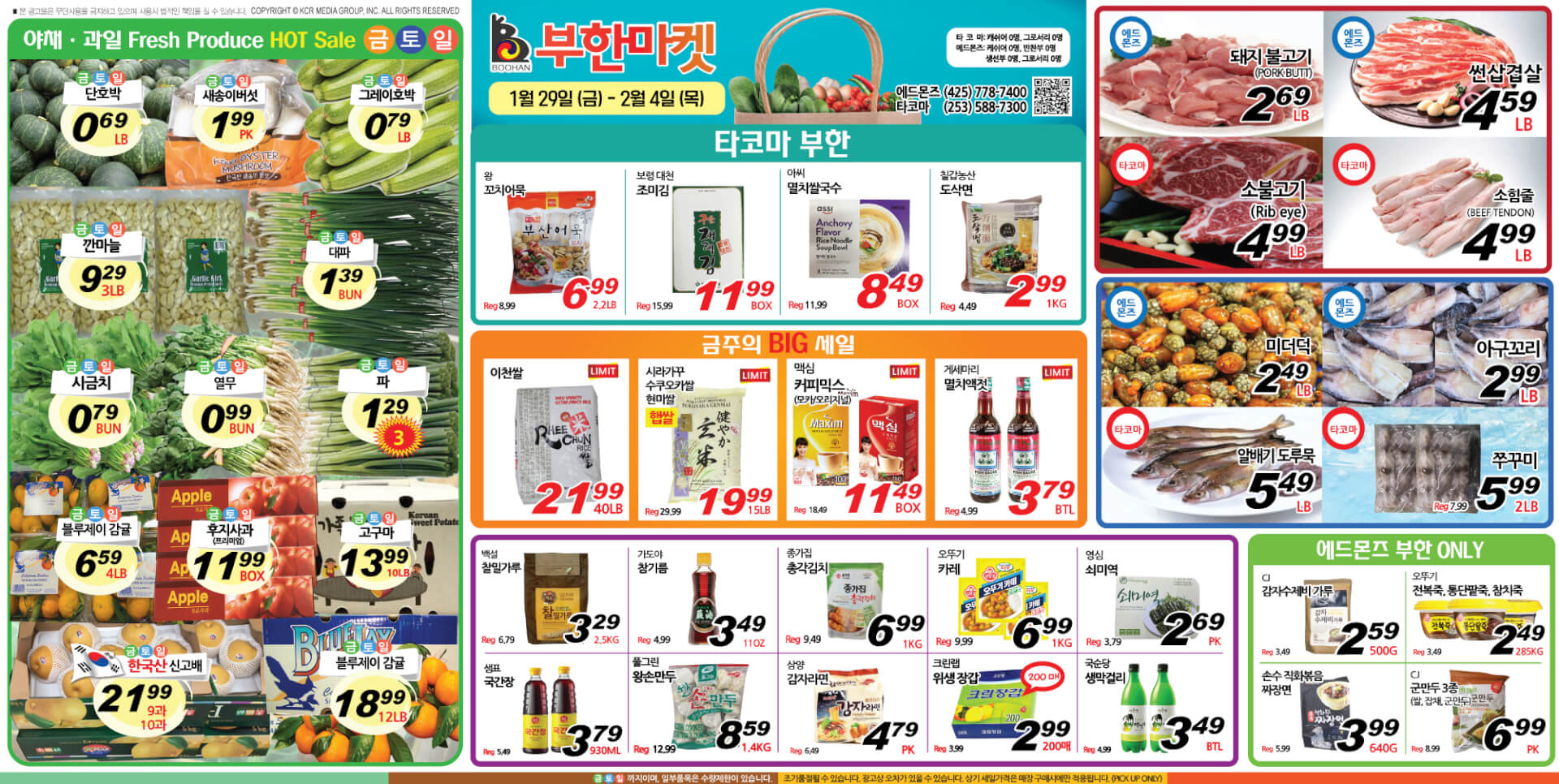 시애틀 한인마켓 주말세일정보(1월29~2월1일,2월4일)