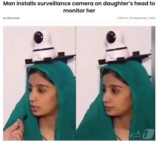 파키스탄의 한 남성이 딸의 머리에 감시카메라를 설치해 논란이 일고 있다.