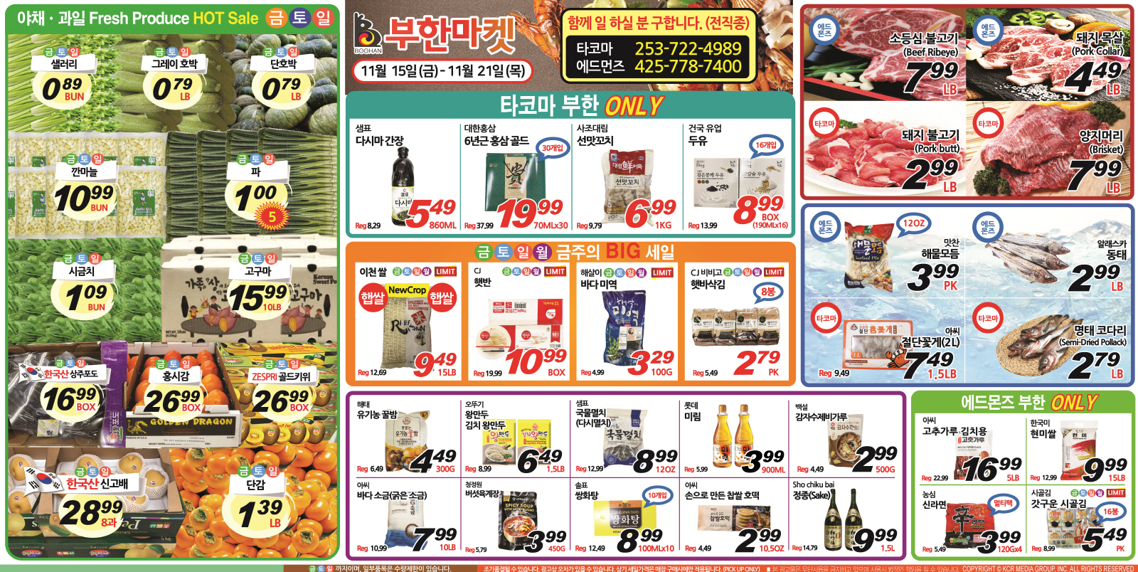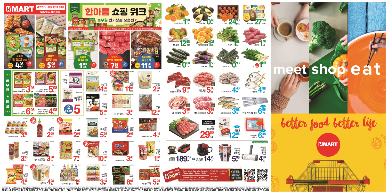 시애틀 한인마켓 주말 쇼핑정보(2024년 11월 15일~11월18일, 11월21일)