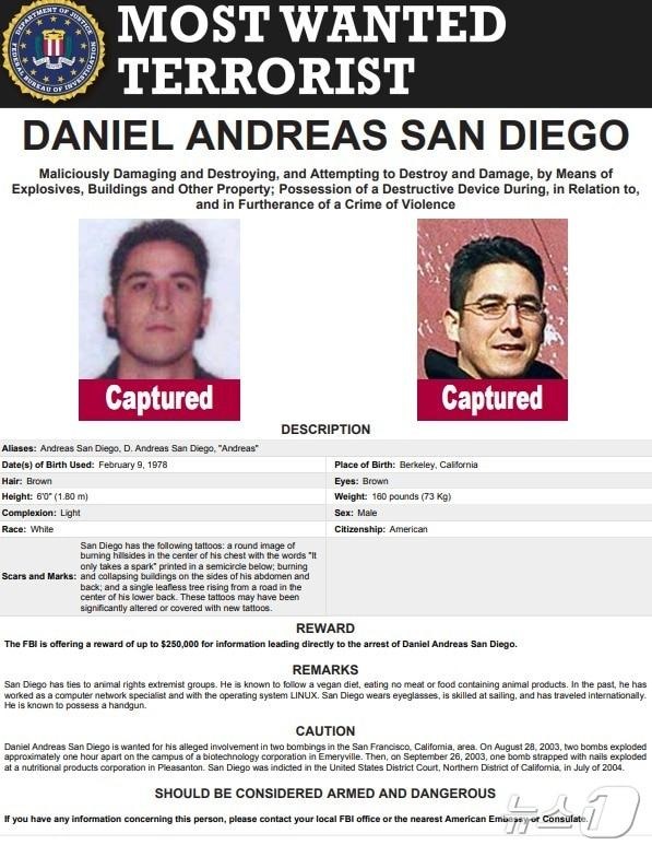뉴욕타임스(NYT)에 따르면, FBI는 26일(현지시간) 영국 웨일스에서 다니엘 안드레아스 샌디에이고(46)를 붙잡았다고 밝혔다.