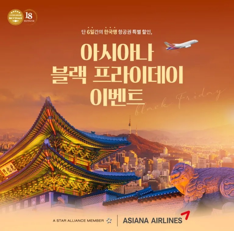아시아나항공 미주지역본부는 11월 26일부터 12월 2일까지 블랙프라이데이 특가 이벤트를 진행한다.