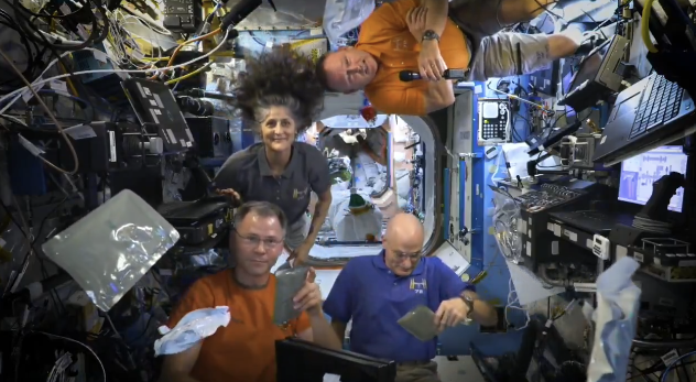 보잉의 우주선 스타라이너를 타고 국제우주정거장(ISS)으로 갔다 우주선 고장으로 지구로 돌아오지 못하고 있는 우주인들이 ISS에서 추수감사절을 보내는 모습을 공개했다.