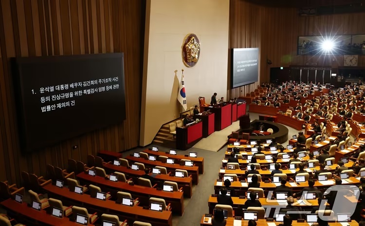 윤석열 대통령 탄핵소추안 및 배우자 김건희 여사 특검법안 처리를 위한 국회 본회의가 7일 열렸다.