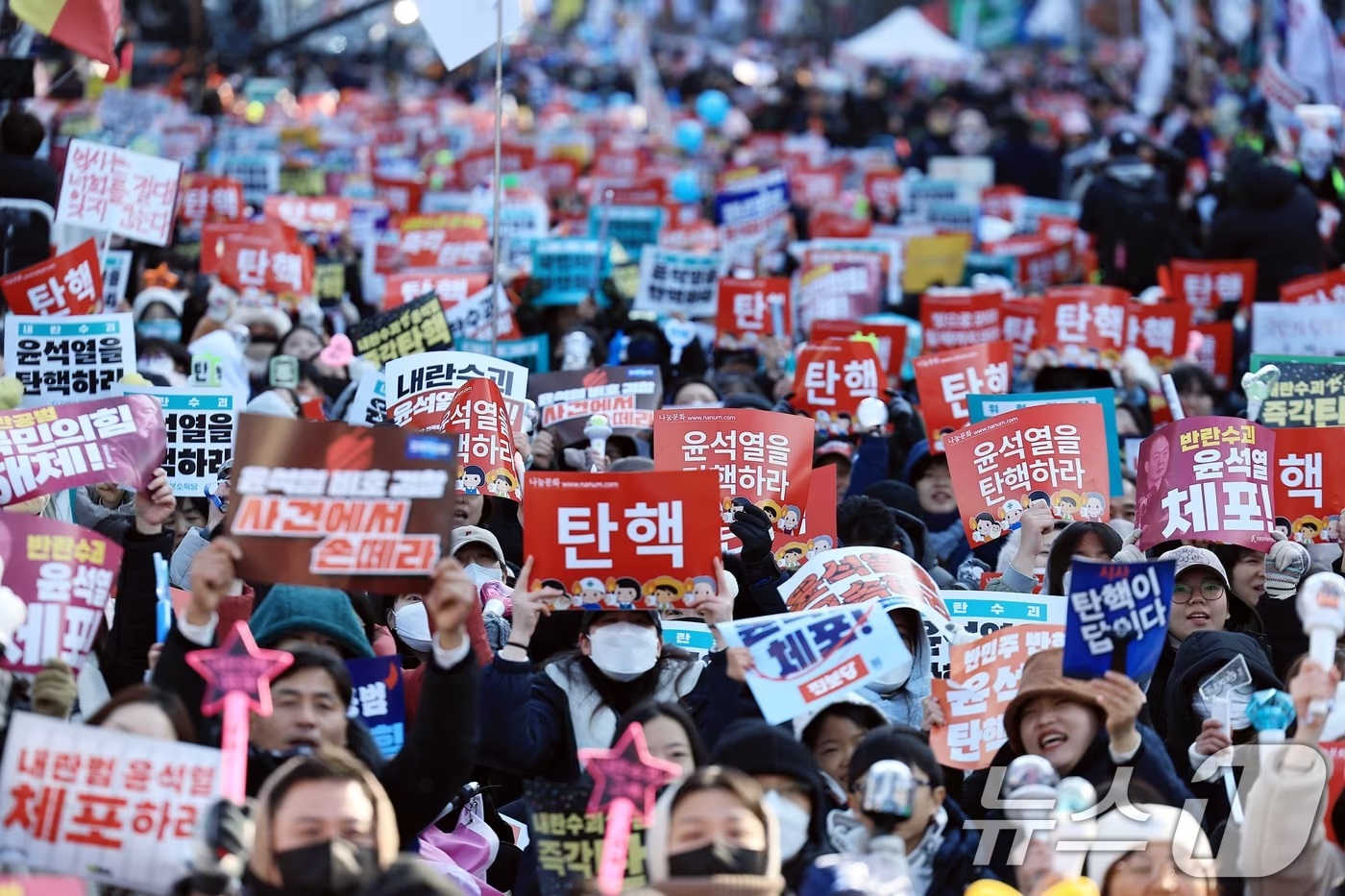 "사람 더 늘었다" "마지막 집회이길"…'尹 탄핵 표결' 국회 앞 인산인해