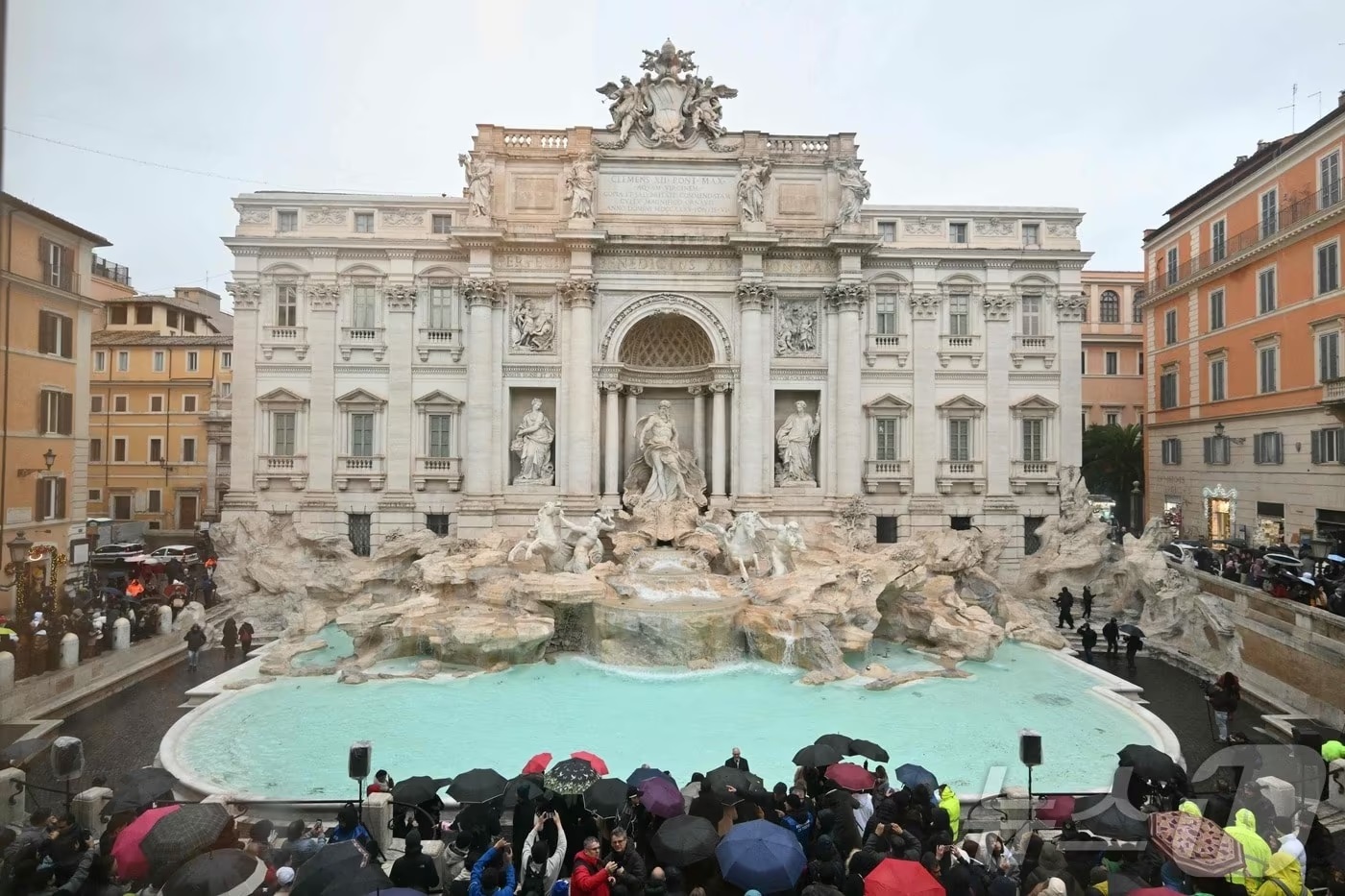 이날 로마에서는 약간의 비가 왔지만, 재개장 행사에 수백 명의 관광객이 몰려 분수대로 동전을 던졌다.