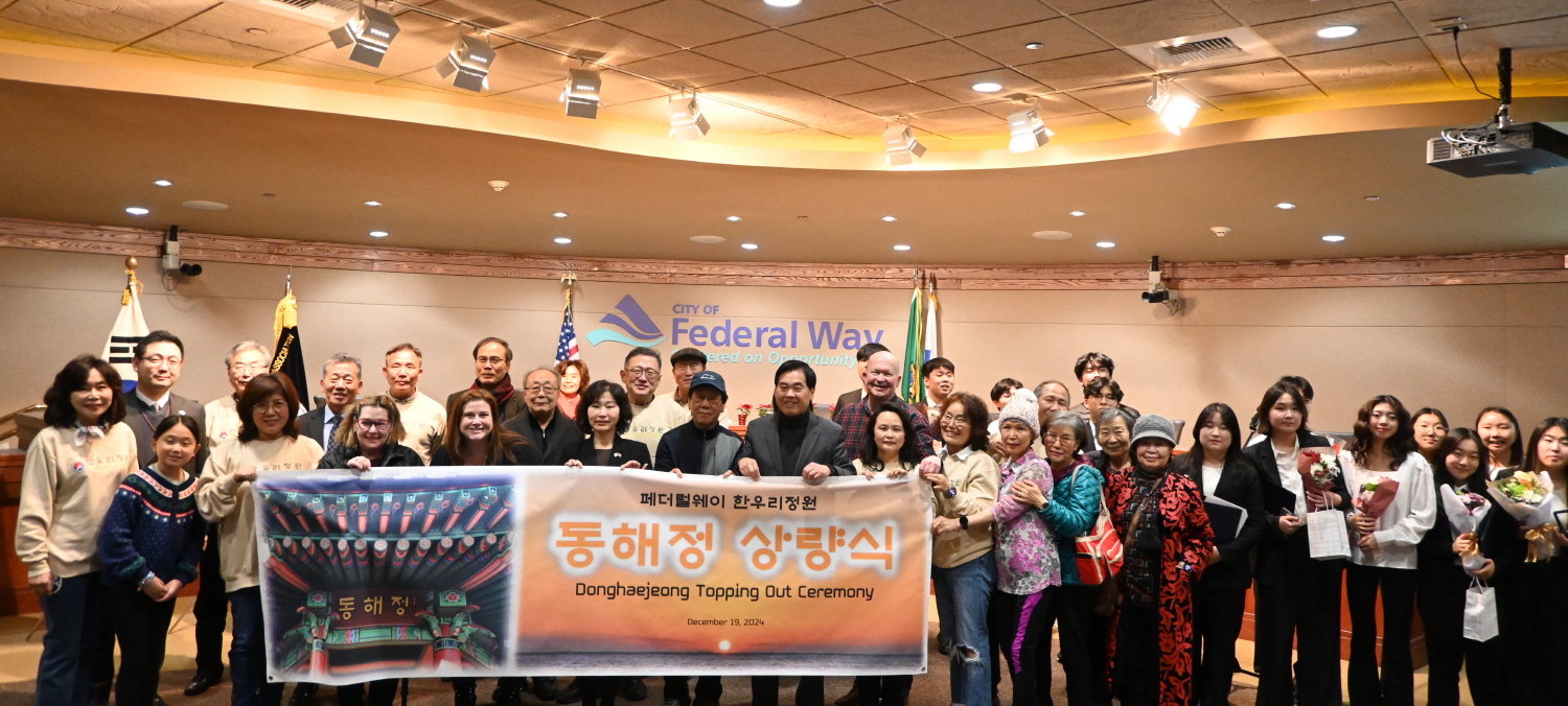 페더럴웨이 한인회는 지난 19일 시청 대회의실에서 동해정 상량식을 열어 한우리정원의 공사 현황과 앞으로의 계획 등을 종합적으로 한인사회에 알렸다. 이날 상량식은 페더럴웨이시가 매 분기마다 개최하고 있는 올해 4분기 시정보고회는 물론 페더럴웨이 한인 청소년 봉사자 시상식과 더불어 열렸다.