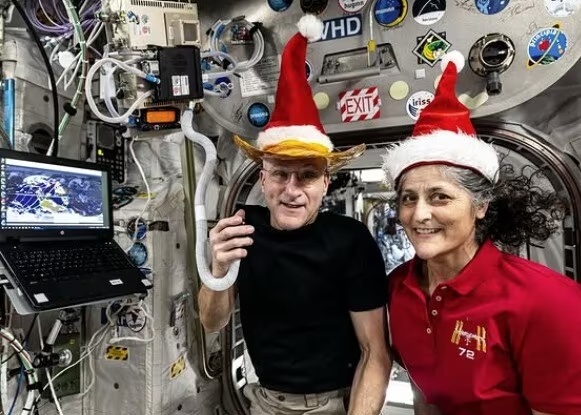 영국 인터넷 신문인 인디펜던트에 따르면, 미국 항공우주국(NASA·나사)의 존슨 우주센터는 지난 16일(현지시간) X(옛 트위터)와 인스타그램 계정에 우주비행사 수니타(수니) 윌리엄스와 돈 페팃이 ISS 콜롬버스 실험실 모듈 안에서 빨간색 산타 모자를 쓰고 찍은 사진을 공개했다.