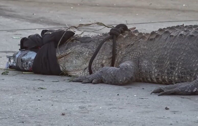 이를 발견한 사람들은 함께 힘을 모아 악어를 제압했다. 일부 목격자들은 페이스북 생방송으로 당시 장면을 기록했다.
