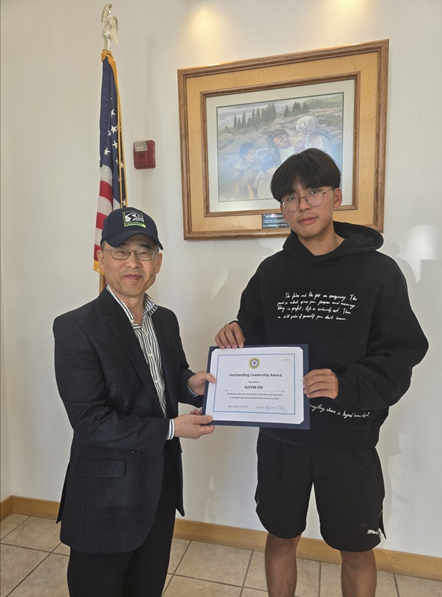 타코마에 거주하는 한인 학생 저스틴 오(한국명 오현승) 군이 최근 한인들이 주도하는 정규학교인 브라이트 라이트스쿨(교장 정규선)로부터 리더십상과 장학금을 받았다.