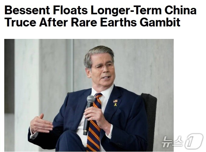 미국 경제의 사령탑 스콧 베선트 재무장관이 중국이 희토류 수출 제한을 풀면 미국의 대중 관세 유예를 3개월 이상 추가로 연장할 것을 시사했다고 블룸버그통신이 15일(현지 시각) 보도했다.