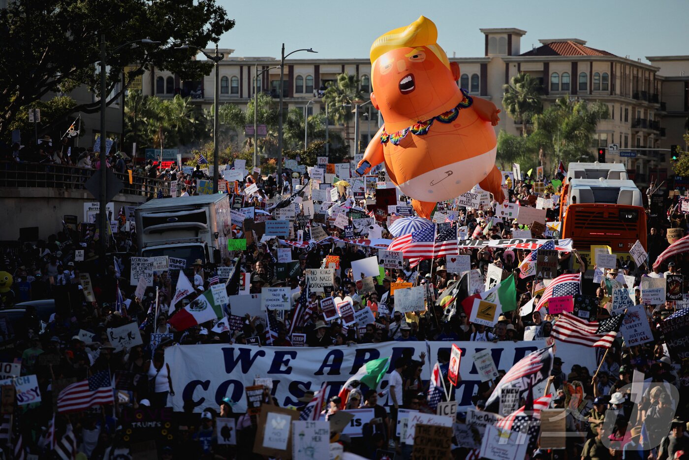 LA에서는 시위자들이 팽창식 의상을 입고 성조기를 흔들었다. 한 시위 참가자는 시위 현장이 '전장'이라는 행정부 관계자들의 발언을 겨냥해 "이걸 전장이라고 부르기에는 무리가 있다. 그냥 블록 파티에 핼러윈 의상을 입은 사람들일 뿐"이라고 말했다.