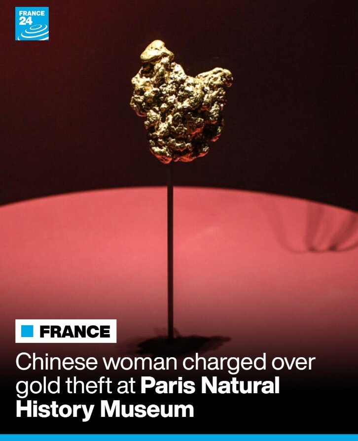 희대의 루브르박물관 보석 절도 사건이 발생한 프랑스 파리에서 이번엔 중국 여성이 파리 국립자연사박물관에서 6㎏ 상당의 금덩이를 훔쳐간 사건이 알려졌다.