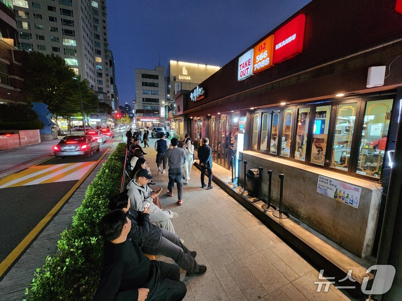 오후 6시쯤이 되자 가게 안 테이블 20개가 꽉 찼다. 가게 밖에는 손님 18명이 순서를 기다리고 있다. 길을 지나가던 한 직장인 남성은 "아까보다 줄이 더 길어졌다"며 기함했다.