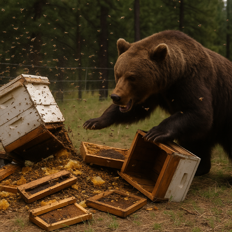 워싱턴주 동부인 마운트 스포켄 숲속에 자리한 11개의 벌통이 어느 날 참혹한 몰골로 변해 있었다. 벌집을 지키던 철망은 너구리나 개 정도를 막기 위한 것이었지만, 굶주린 곰의 침입을 막기엔 역부족이었던 것이다.