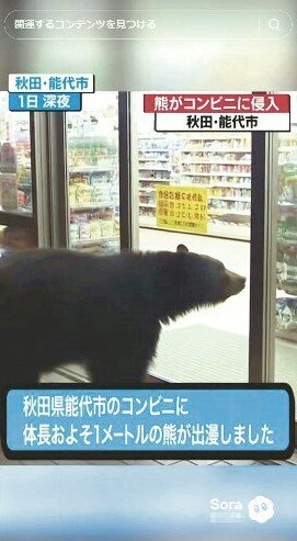 한 영상은 '아키타현 노시로시의 한 편의점에서 몸길이 1m인 곰이 포획됐다'는 내용을 마치 뉴스 화면처럼 구성했다.