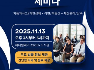 - 시애틀 한인들을 위한 무료생활법률세미나 열린다