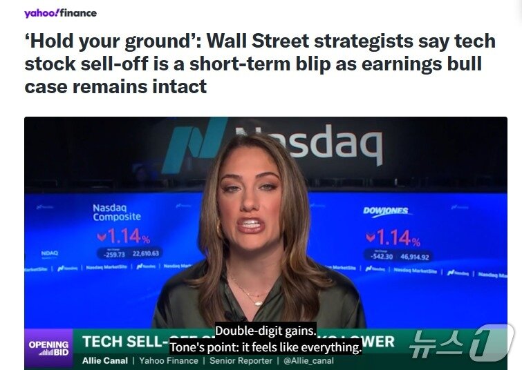 인공지능(AI) 버블 우려로 최근 들어 엔비디아 등 월가의 대표적 AI 주 주가가 약세를 면치 못하고 있지만 AI 주 매도세는 단기간에 그칠 것이라고 미국의 경제 포털 '야후 파이낸스'가 16일(현지 시각) 보도했다.