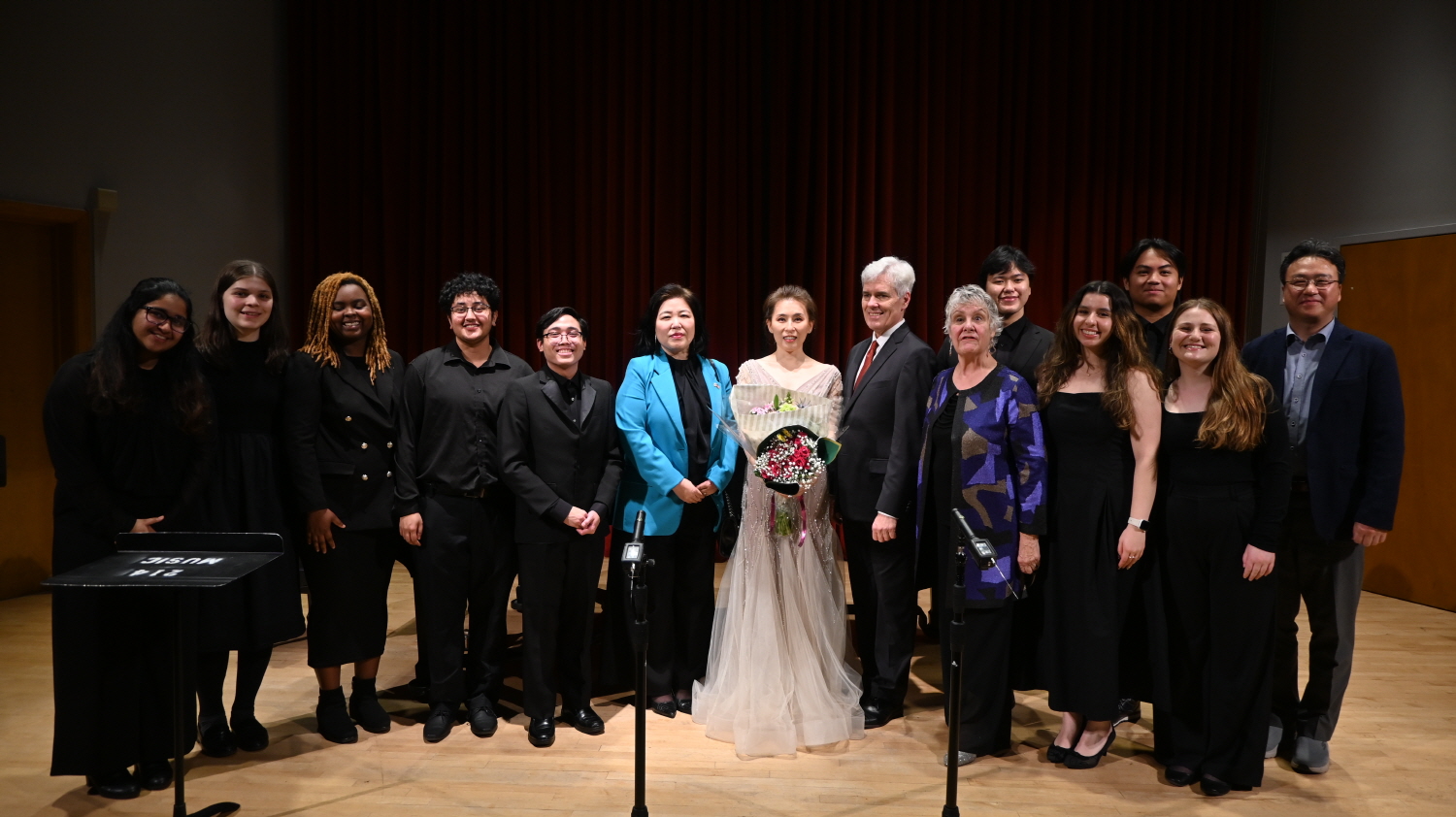 이날 무대는 이화여대를 거쳐 UW 음대에서 성악으로 박사 학위를 받은 김유진 회장과 UW 음대 음악역사 학과장인 테너 스티븐 럼프 교수가 연주를, UW음대 협연 피아노 디렉터인 론다 클라인 교수가 반주를 맡았다. 여기에다 다양한 인종의 UW 학생들로 구성된 UW합창단도 한국어로 된 한국 가곡과 가요를 부르며 무대를 빛냈다.