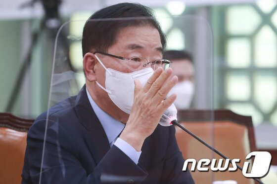 정의용 외교부 장관이 23일 오후 서울 여의도 국회 외교통일위원회 전체회의에서 의원 질의에 답하고 있다. 2021.8.23/뉴스1 © News1 이동해 기자 |